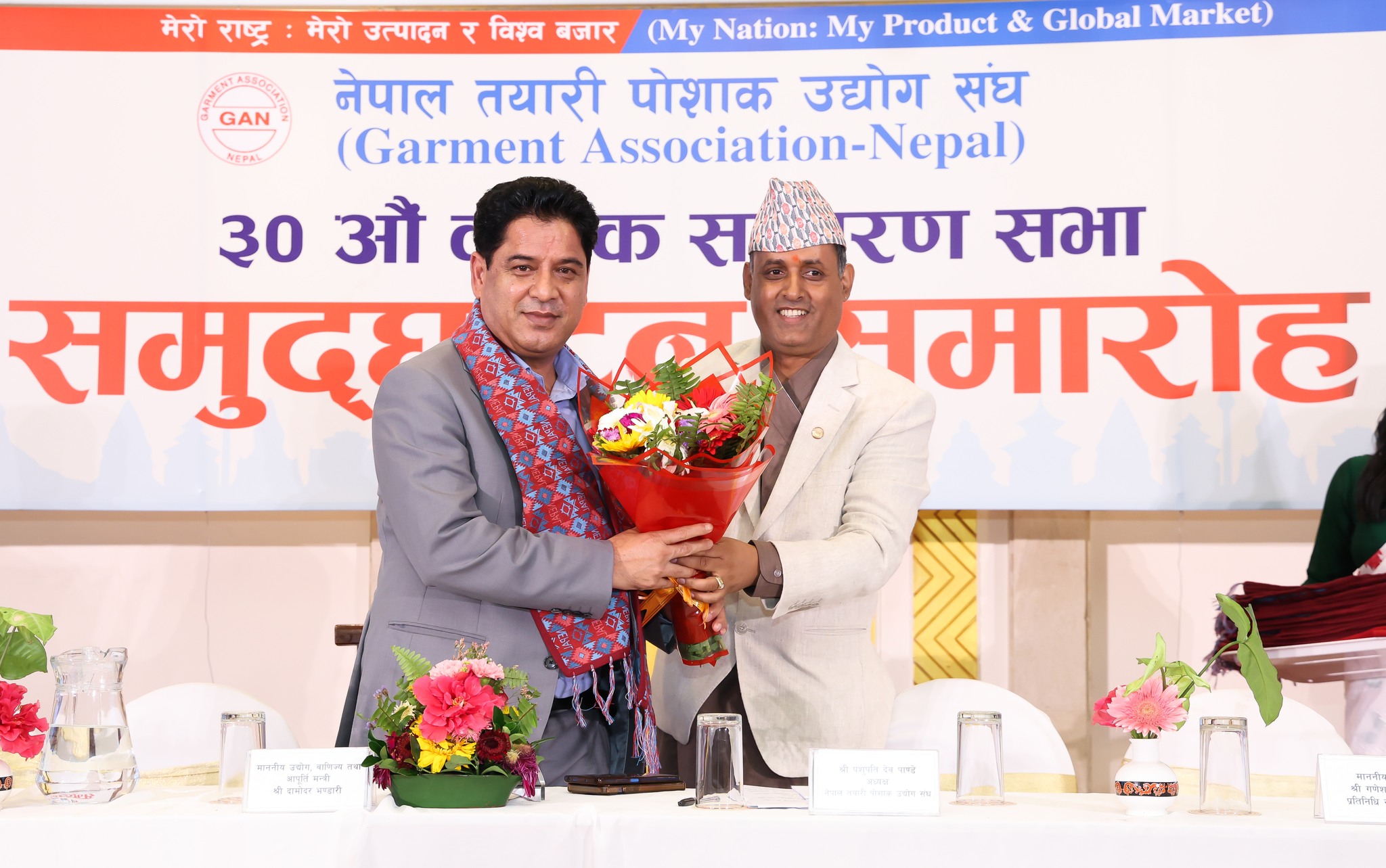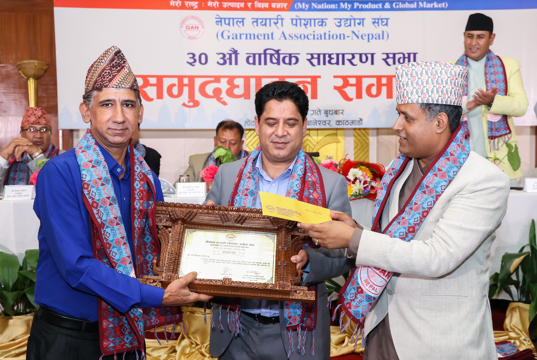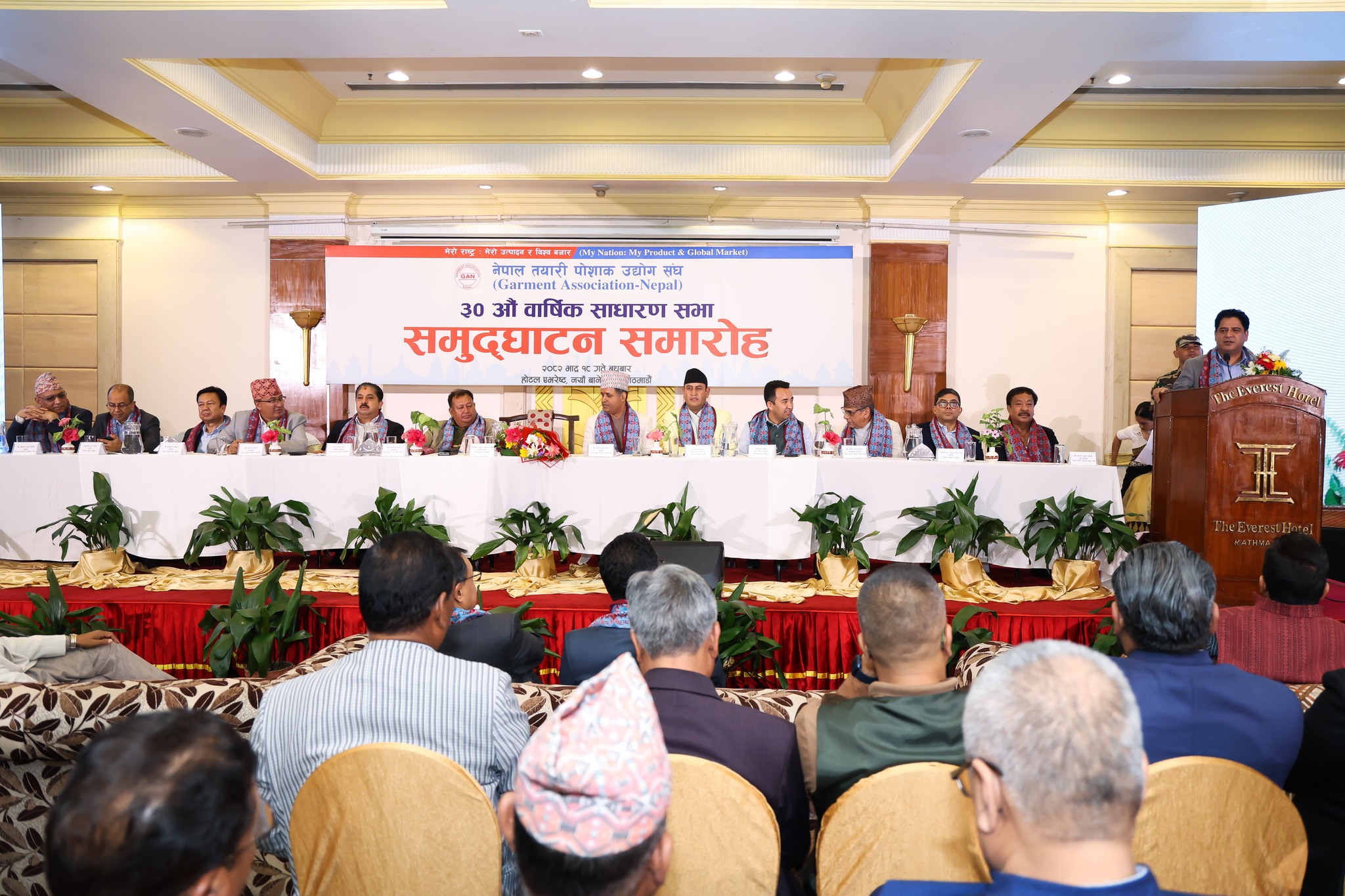 The closing session of the 30th Annual General Meeting of the Garment Association Nepal was held in Kathmandu on September 3, 2025 (18th Bhadra 2082) Wednesday. The event was chaired by the Association’s President, Mr. Pashupati Dev Pandey.